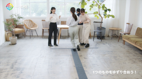 ピースをスタート地点からゴール地点にチームで協力して運び、プレートにキレイにはめるというミッションをクリアします。1回の移動でそれぞれが運べるのは、自分の担当カラーのピース2個ずつのみ。